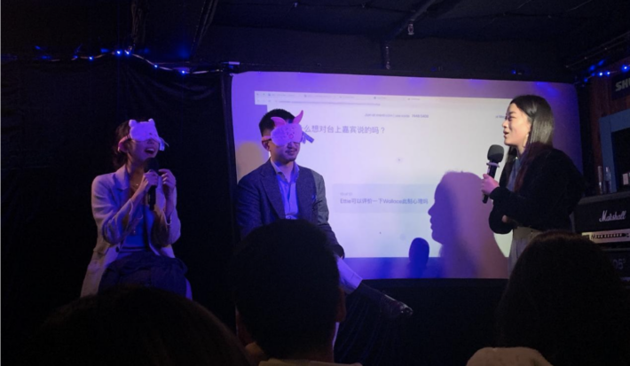 Photo: Kate Hu (right) was hosting a dating comedy show in the Aftermath, Hong Kong. Credit: Miya Yonger Shen