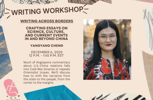Virtual Workshop: Writing Across Borders: Crafting Essays on Science, Culture & Current Events with Yangyang Cheng
